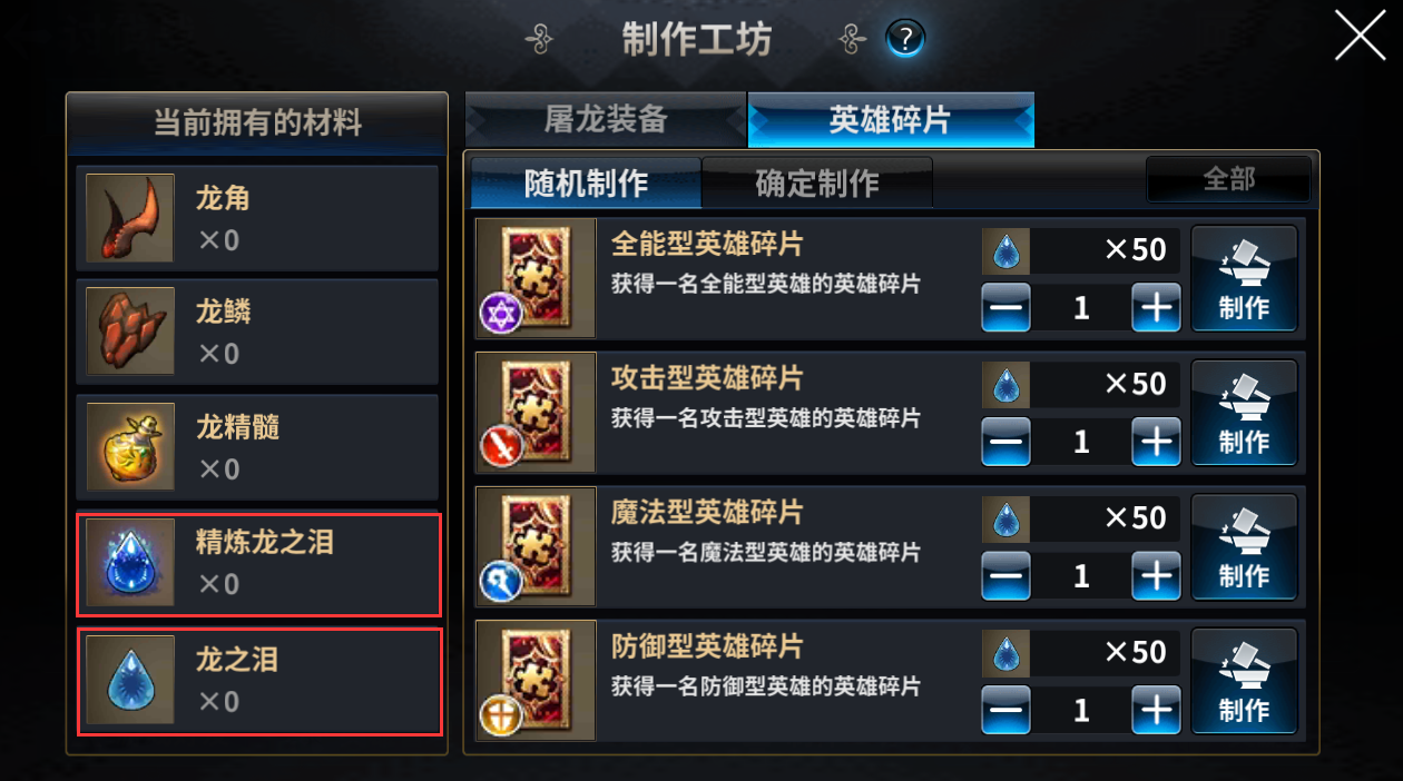 -讨伐制作工坊列表中添加英雄碎片制作(随机制作与确定制作)