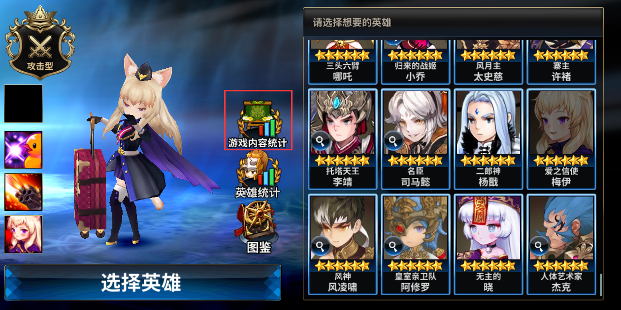 -点击统计英雄按钮时,显示该英雄对应的UI(以6星英雄为基准统计数据,没有6星英雄则不予显示,例如:阿里等)