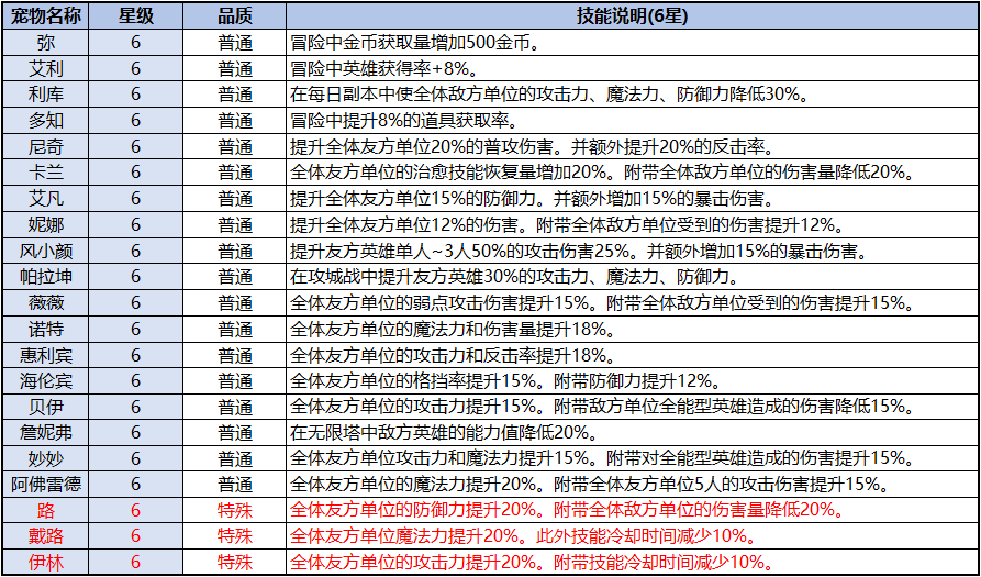 -6星宠物会额外增加1个被动技能