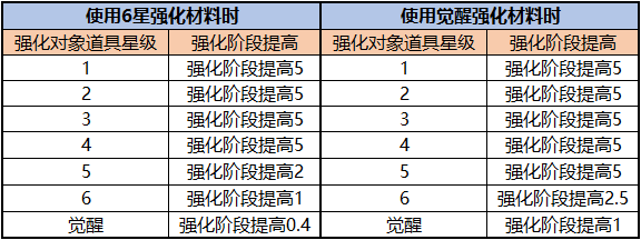 *当前游戏内没有觉醒宝石,因而7星材料用于6星装备时,装备强化阶段需提高2.5。