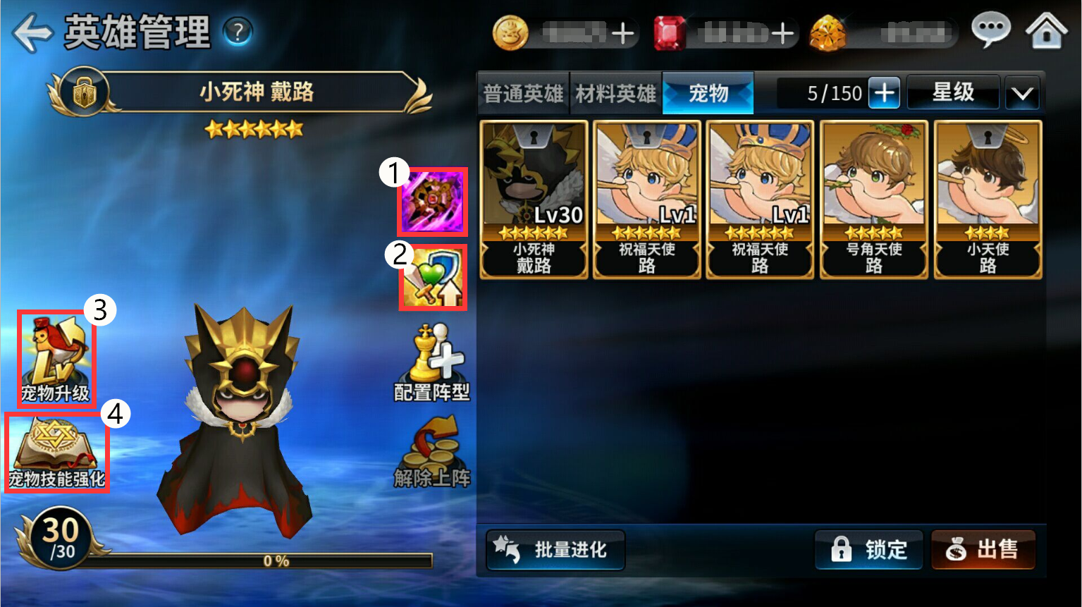图4:宠物等级达到30级开启技能强化,可消耗金币来提升宠物默认被动技能(图1)的等级上限。