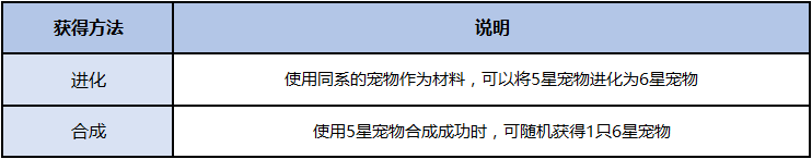 -对同样星级,同一种类的一对宠物进行进化后,可获得段位更高一级的宠物
