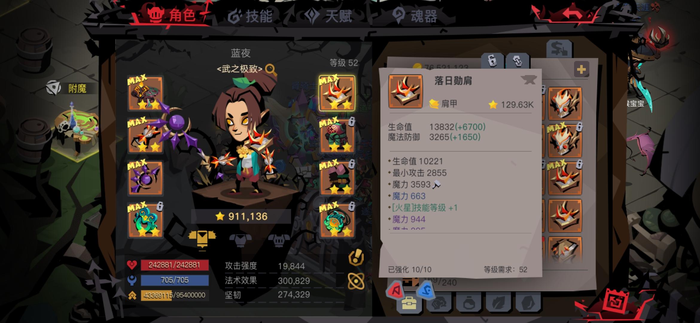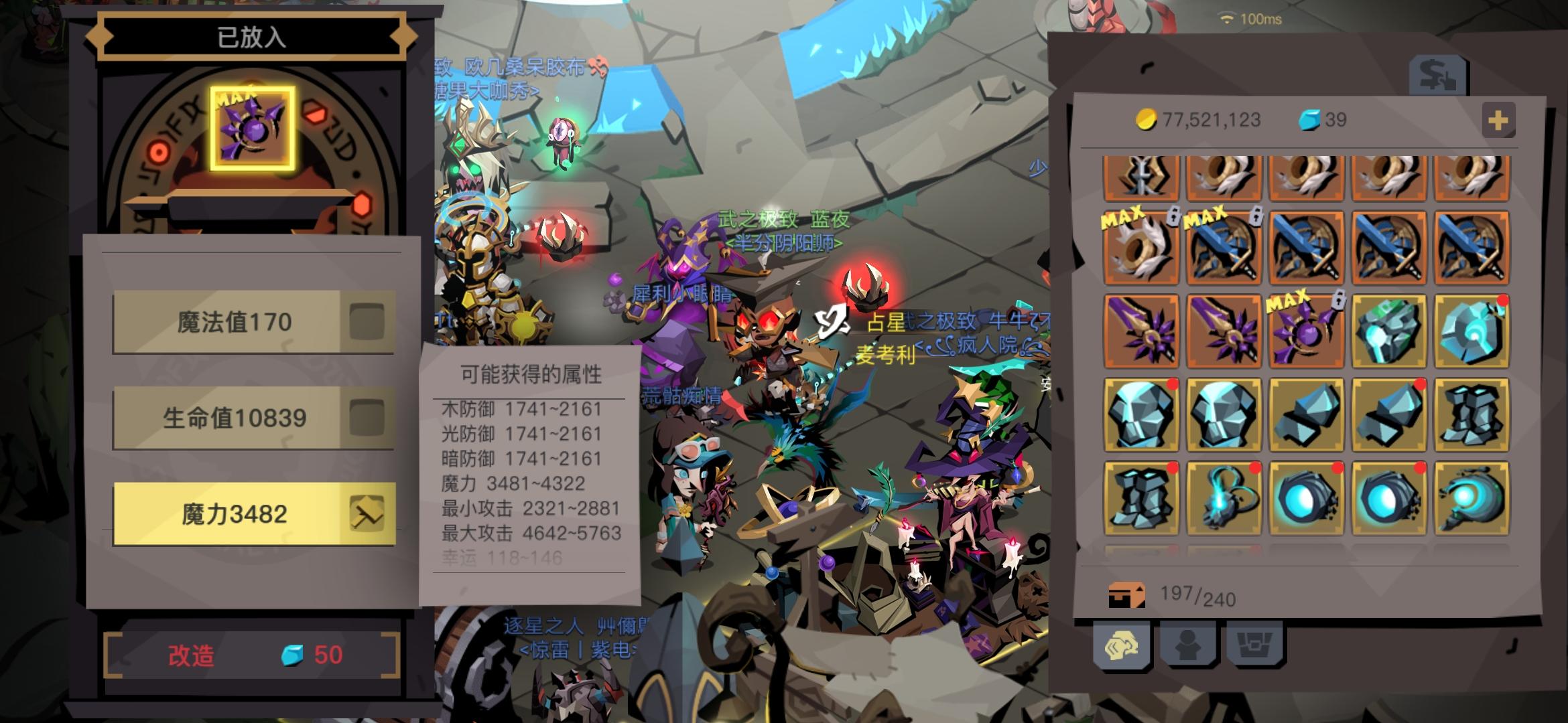 这是我通关扭曲二精英后目前第一次改造出生命,魔力生命都是触底,现在装备的52装备魔力全部触底