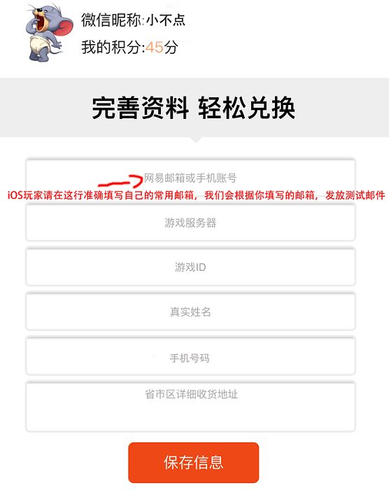 4、iOS玩家请在公众号的积分商城-我的信息中完善自己的邮箱信息,如下