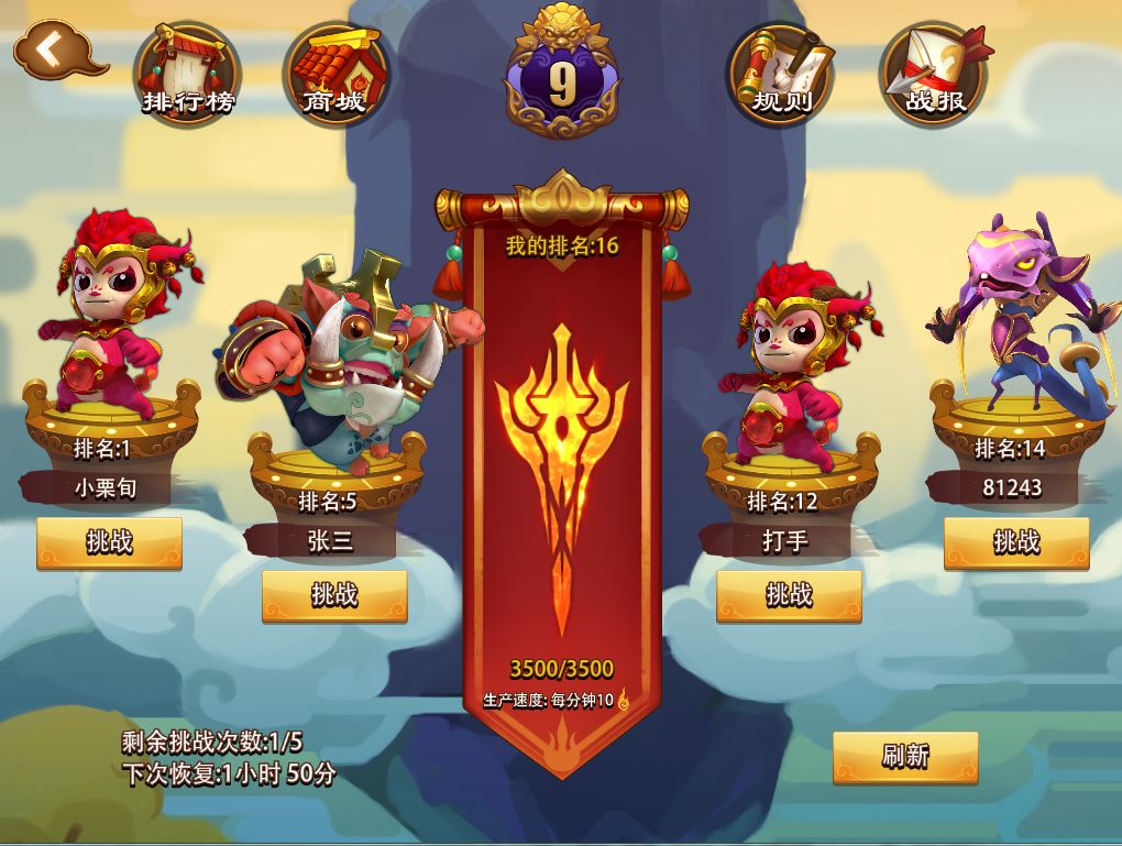 每日竞技场是玩家检验自己能力级别的战场,并且会根据每日的挑战排名段位发放奖励。系统会依照玩家竞技场排名来进行匹配对手。竞技场排名越高,每分钟能获得的荣誉点越多,荣誉点可以在荣誉商店内购买竞技场限定宝箱。在竞技场中没有永久的胜者,只有永远的挑战者!