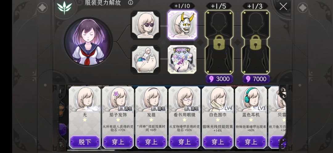 这个👆🏻系统201关开启,感觉没啥用,大体就是,设定没有穿着的服装,可以把属性附加到正在装备的时装上,之所以说没用是就加十分之一,也就是说30%实际加3%屁用没有,解锁第二个可以附加五分之一属性,依旧没什么用,有这三千勾玉,我还解锁什么,直接抽奖呗
