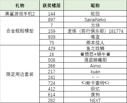 来看看是哪些幸运的指挥官获得了奖品呢?