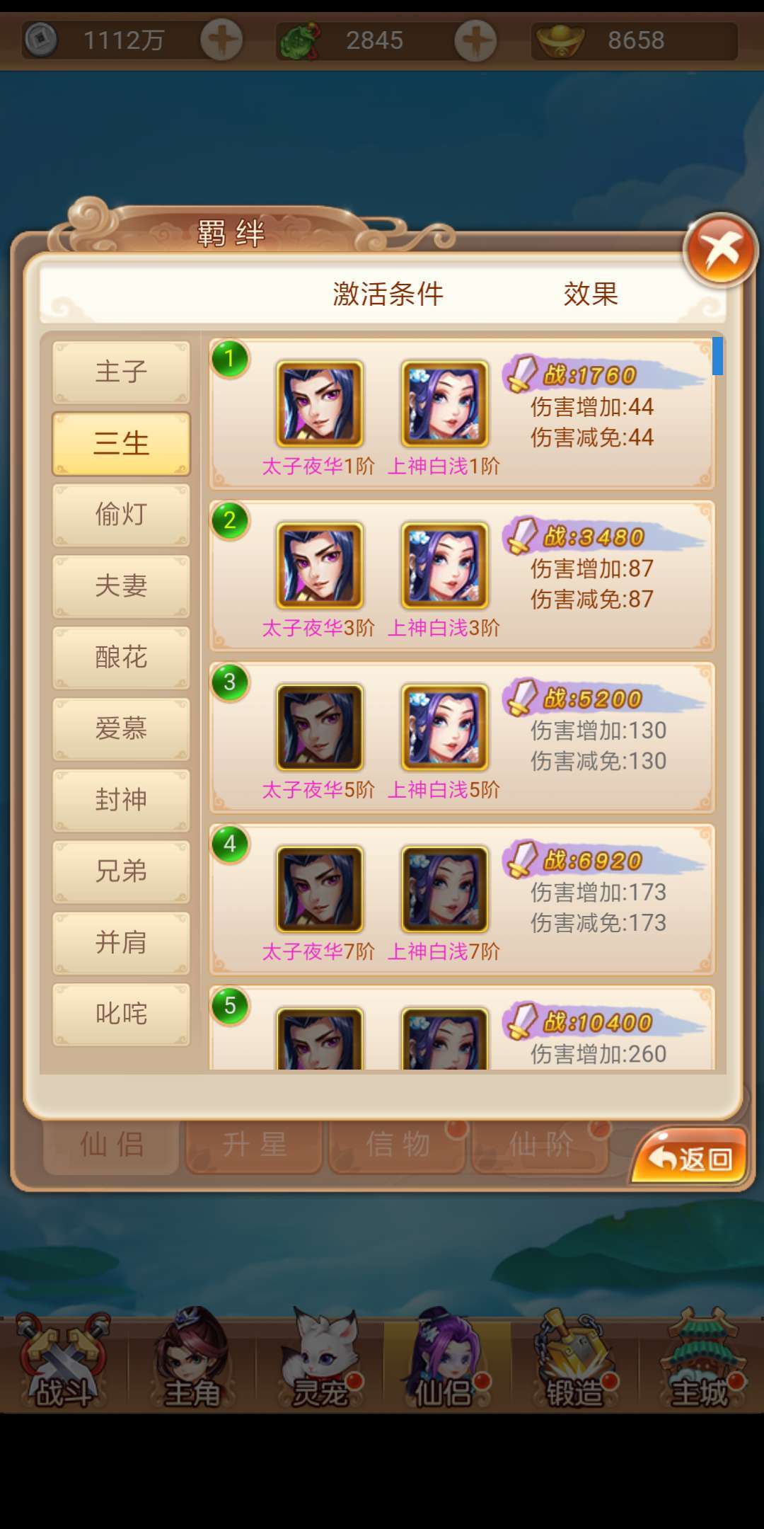 升星:通过消耗仙侣自身的碎片进行升星,升星后仙侣的技能将会得到提升。