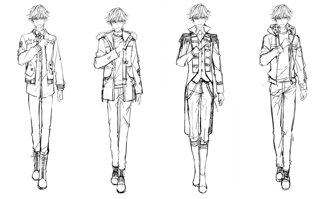 2. 在四位人物的创作当中,我们通过调研与编剧协调选取了当下最受欢迎的四种属性(即阳光男孩、高冷男、小奶狗、小狼狗)来作为人物的基础模板。因为这四种男生的大类型被广泛应用于小说、影视剧、游戏等领域,所以本着希望《恋爱吧!偶像》可以被更多玩家接受的心理,我们最终塑造了阳光男孩林尹默,高冷男谭飞,小奶狗李赫,小狼狗方以乔。关于他们的设计思路与草图将会在末尾放出,四位主角的设定经过多番探讨,不乏各种重置,为的是将我们内心最好的角色呈献给大家。