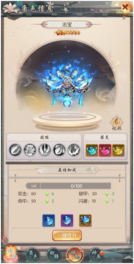 3、神功也可用过使用不同级别的神功丹获得更多的属性加成;