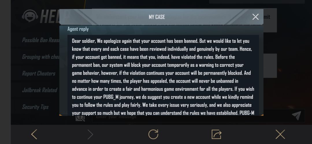 关于PUBGmobile封号10年…收到这个结果当时和现在完全不一样的心态。开始的惊讶不相信,以为会解封的心情随着一天、一周、一个月,半年,近一年…的时间流逝中变为负值。等待中不乏各种方式申诉——得到的不是自动回复就是自动回复![[嗒啦啦2_记仇]](https://img.tapimg.com/market/images/4d24140484a5e5f0ace9962bdee344d7.gif)