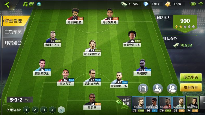 3.我们可以依靠5-3-2或者5-4-1这种偏防守的阵型来强化队伍的防守能力,在实战中拦住对方进攻路线,打乱他们的进攻阵型。