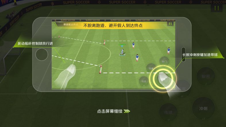 1. 带球的途中长按冲刺按钮可以使球员加速,跑得更快,但是,带球途中对方肯定会过来逼抢,这时就要展现你高超的带球过人技术,必要时刻要把球传给旁边的球员,这样可以更好地突破对手的防御和包围。