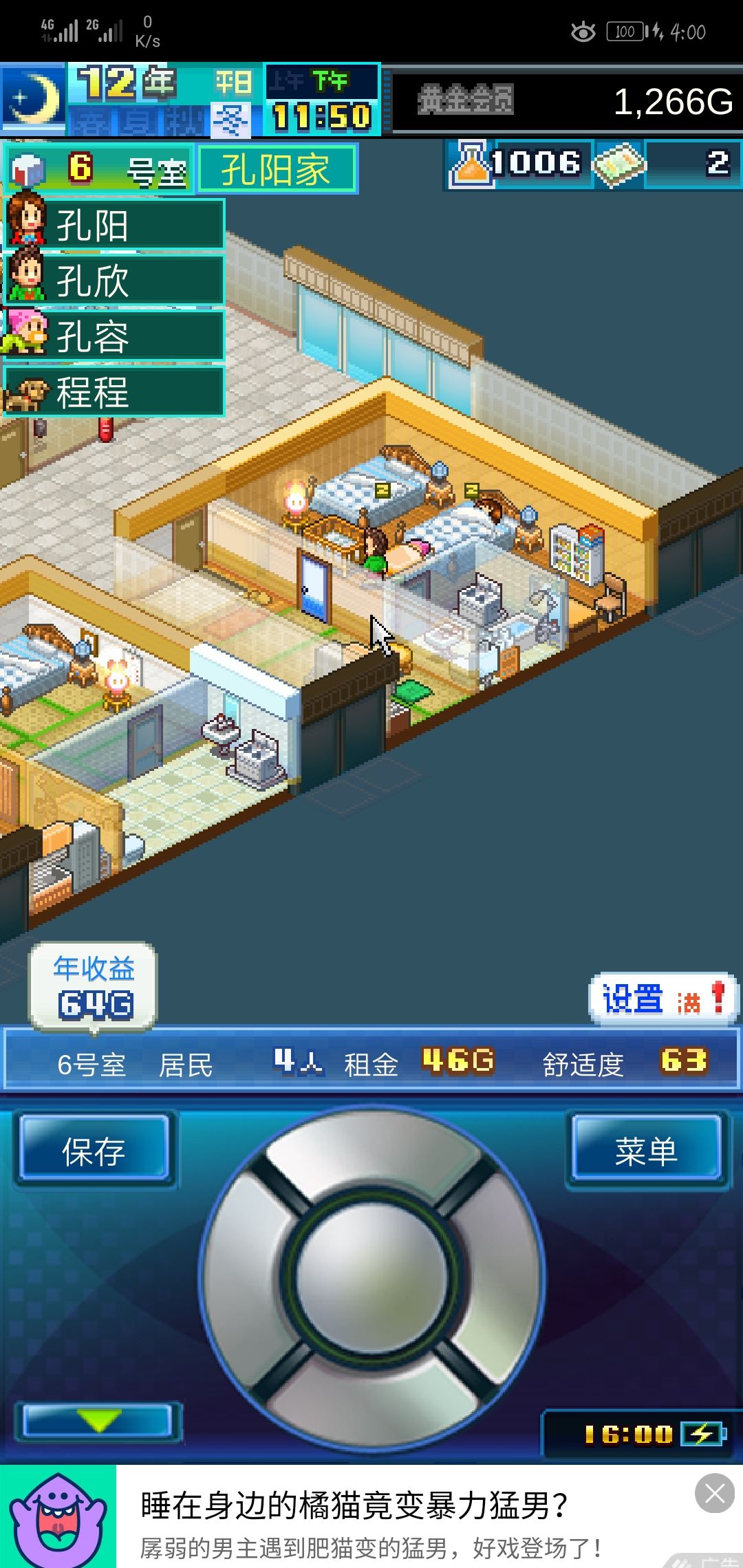本来我以为住到比较大的房子(中型居室)里,他们才会很幸福然后生娃,结果第一户房梦雄都搬走了还没生娃(我还让他们搬到9号室这种比较大的房间里了...),住小房间的却悄咪咪生了娃?(还是我太肤浅了吗ฅ(♡ơ ₃ơ)ฅ)没有一点点防备就给我来了这么大个惊喜,小娃娃和小狗狗真的超可爱的嘤嘤嘤(ಥ_ಥ),萌到爆啊啊啊!!!(不过值得吐槽的是这游戏里的两口子居然分床睡,娃是怎么造出来的?难道是趁我不注意洗了个鸳鸯浴哈哈哈哈因为这间房我是没怎么做希望,我一直盯着那几间中型居室🏠里的夫妻)