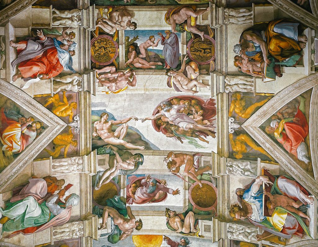 这是米开朗基罗于1511年至1512年在西斯廷礼拜堂天顶创作的世界名画,故事出自《圣经·创世纪》,描绘了上帝创造第一个人类亚当的场景。