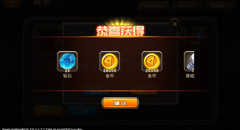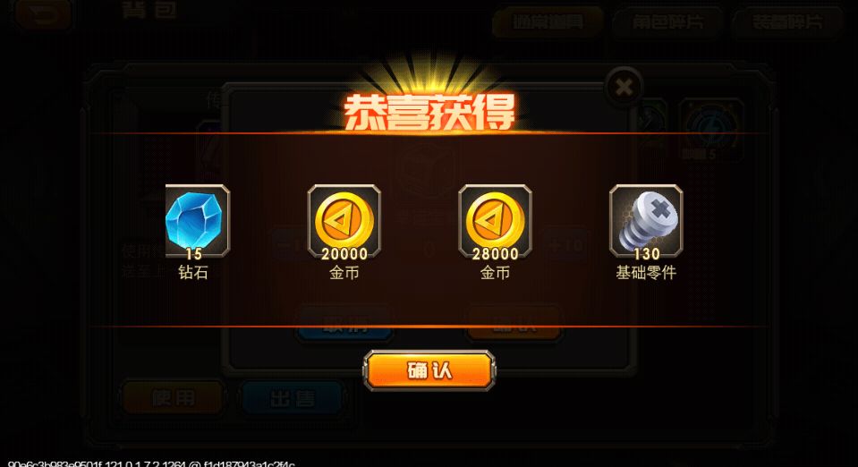 新版1.72,打怪结束后会弹出个观看广告获得一个幸运宝箱(注意:打剧情怪物的时候没有广告,意思就是你打完主线怪物后会自动进行对话的会没有广告,打地图野怪的会弹出广告)宝箱能开出钻石、金币、基础零件,开出钻石的几率小。以下为游戏中测试: