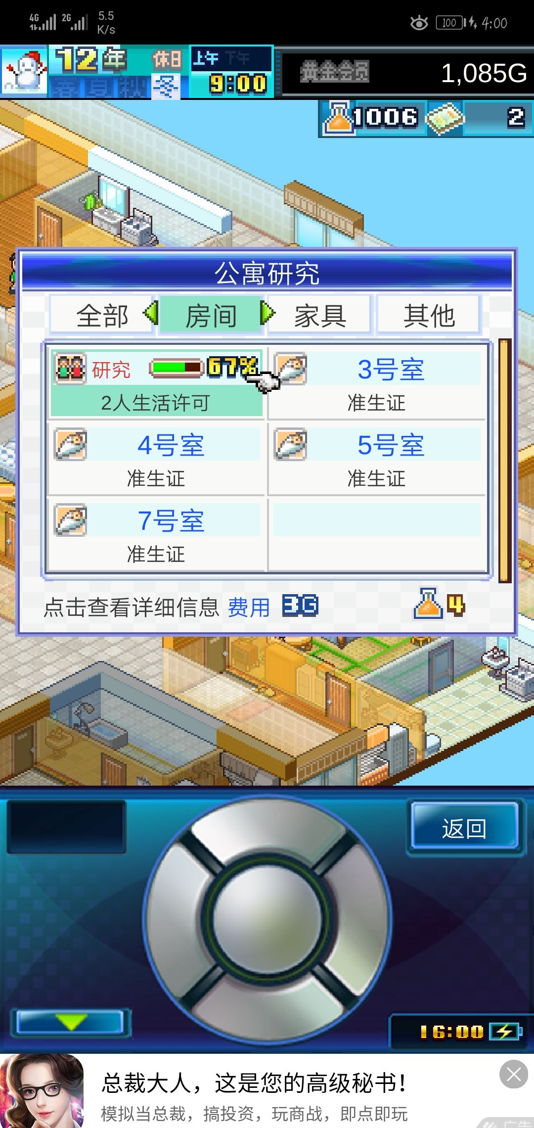 才发现五号室的准生证没有研究的...连床🛏也忘记加,我真的太不称职了,把他们通往幸福的路斩断了...我这个妈当的,唉,赶紧加个床,让他老两口幸福点...看这老头都愁的秃顶了👴,几个老人里唯一的秃顶老头👴