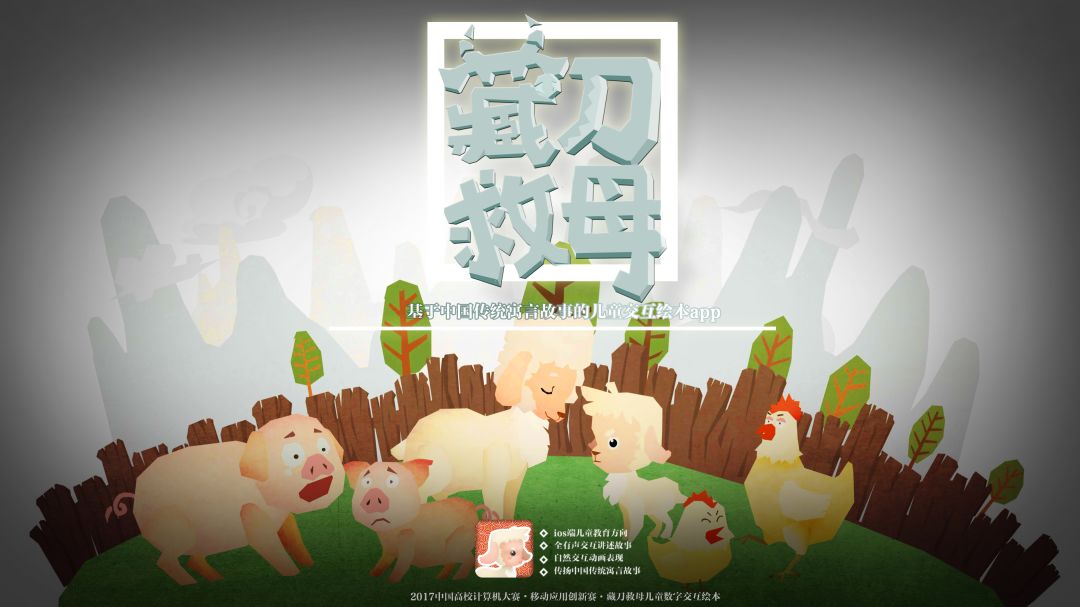 这本交互绘本从中国传统故事“藏刀救母”的动物视角出发,探究人与动物之间关系的互相影响,突出了生灵感情共通并且可以相互慰藉和启发的特点,以App交互设计绘本游戏的形式,讲述人与动物关系改善的一则故事。