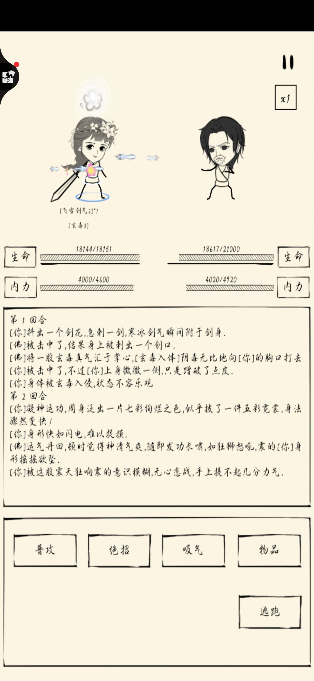 (目前开战斗动画会在如来出手的一瞬间闪退,只能关闭了,补充一点,这里的灼烧是烈火手套造成的效果,不是如来的)