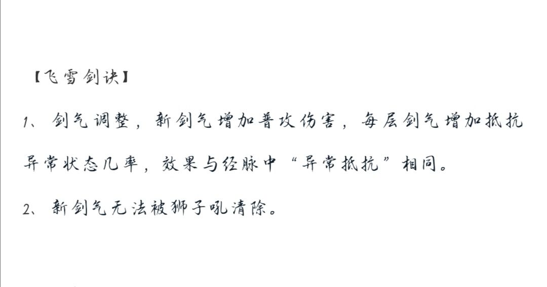 前几天官方发布了一条关于武学加强的消息,其中关于飞雪的加强是这样的