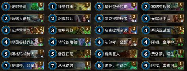 赛事第二周,海选赛BO1残酷依旧,各位我们熟知的天梯高玩如“滋滋”“怒风”等纷纷倒在了海选阶段。 曾问鼎天梯的大佬“光神”在本周的周赛中成功摆脱一轮游的诅咒杀入十六强,不过仍然在周日的十六强淘汰赛中落败。本周的十六强名单中,我们看到了上周进入十六强的“恋心”、“尤塞尔”、“旅法师营地大白”都出现在了榜上。经过选手们激烈的交战、观众们疯狂的毒奶,在上周抱恨止步半决赛的“尤塞尔”在决赛中战胜了TCG圈内知名玩家“旅法师营地大白”,获得了本周周赛的冠军!