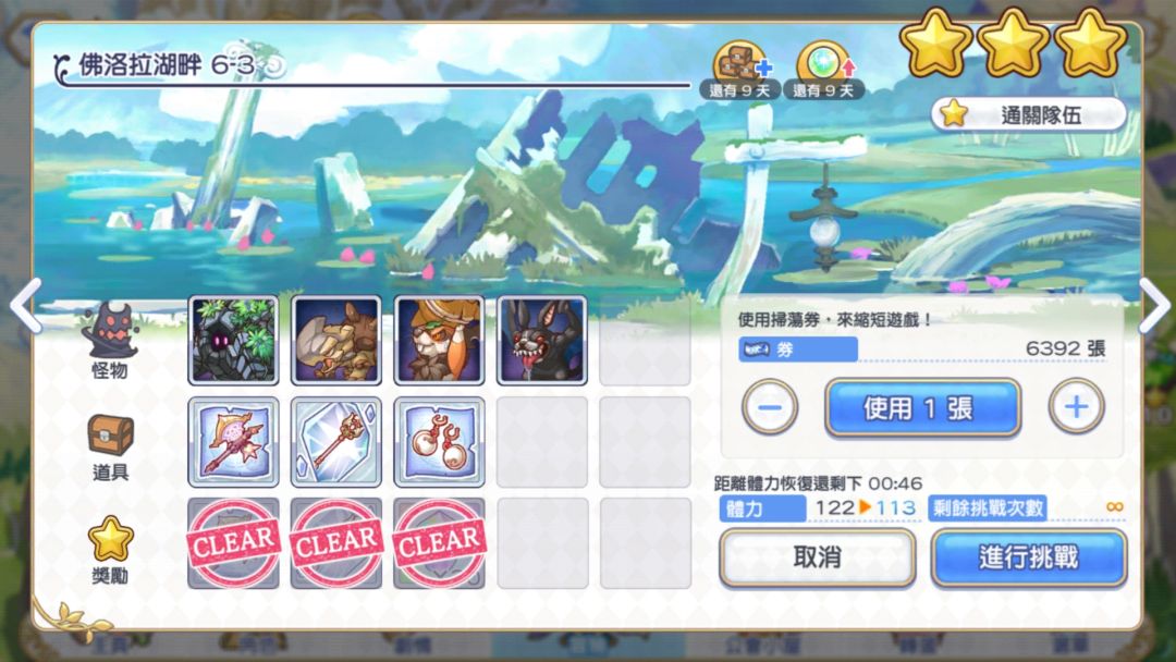 Y:好了现在你可以考虑一下给装备强化升星了。如果你是打太久超时就去吧你输出角色的长得像是个武器的装备升级一下,某个角色死了导致崩盘就去吧他长得像衣服的装备升级一下,不要贪多不然浪费mana。