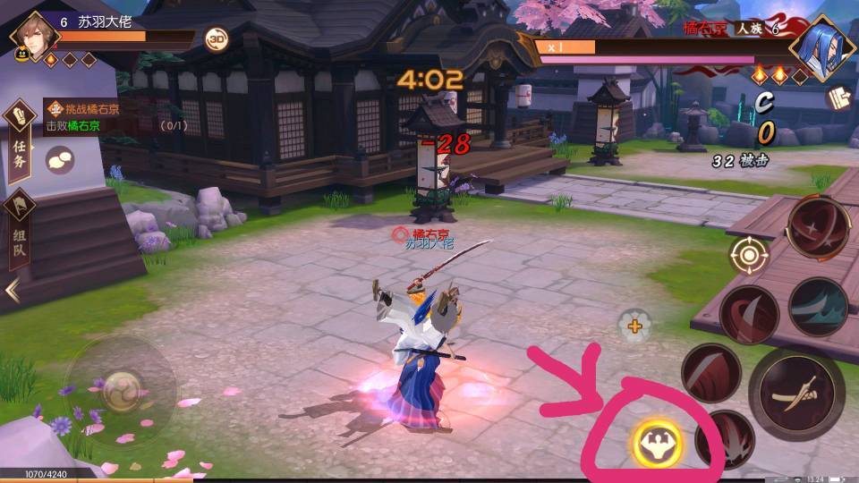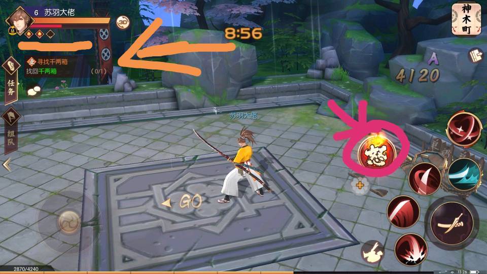 然后按照指引完成任务 下面是一些小知识点(敲黑板) 翻滚(被控时发亮变成解控的受体)翻滚可短暂无敌哦,利用好变大神! 怒气,按完所有技能增伤150%,左上角的是怒气点,满两点可用怒气,三点延长怒气时间,利用好伤害爆表!