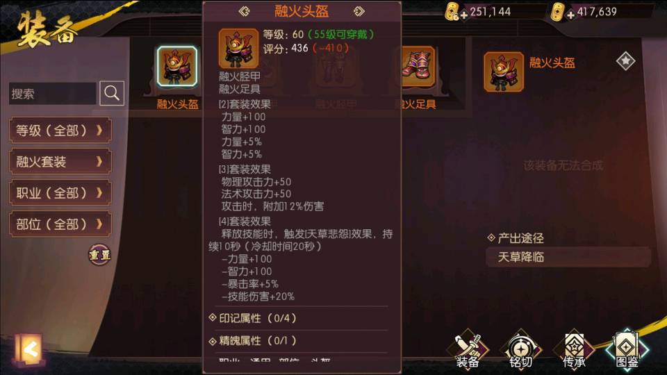 所有的本命55橙装都可以传承(消耗天草珠子)为60橙装(印笼和符石暂时不能)具体套装如下(暂时只展示防具套,等你接触到首饰套和荒古武器的时候你就脱离萌)