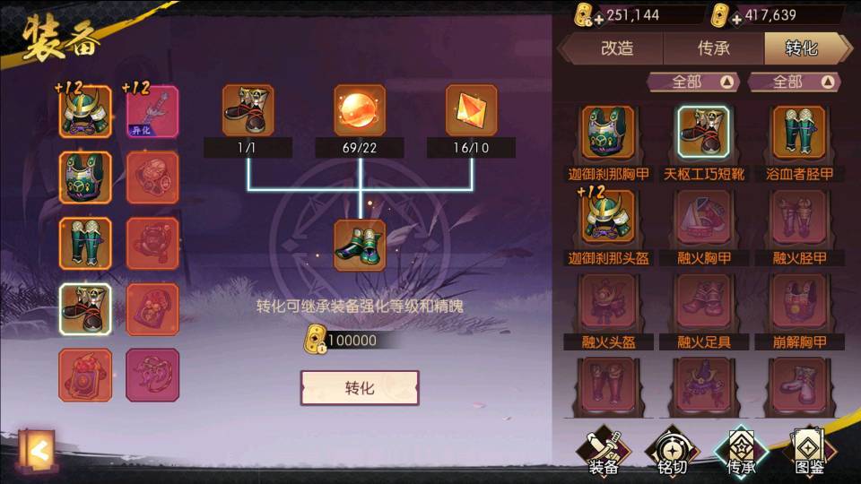 提升战力篇:强化装备,铭切,武者,坐骑(十二以上装备强化失败会异化不能进行任何操作需要回火符进行复原同时强化等级清零)