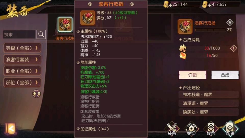 装备可以通过深渊爆的碎片集齐(橙晶可分解那些没用的橙装获得),而你爆到不是你职业的55橙装也不要慌,可以转换成本命(消耗天草珠子,中间那个圆珠子) 通过打普通任务本获得的粉尘可以换55本命粉武器,可以通过改造(消耗魔界余烬)变成本命55橙武