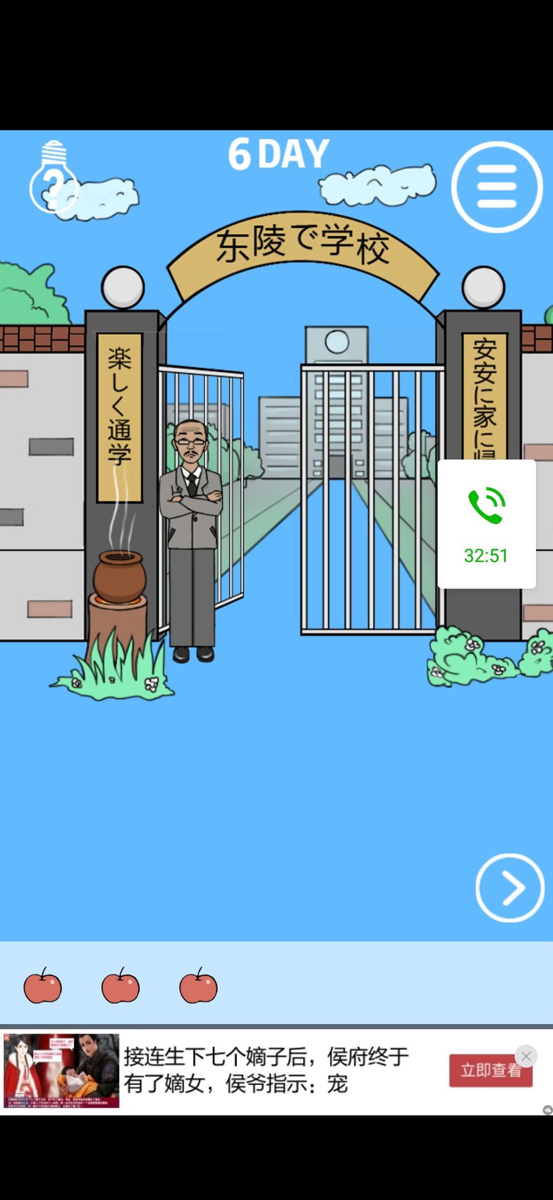 刚刚在玩《进不去学校》发现了一个漏洞 第5关 应该是先喂蛇3个苹果 蛇把老师毒晕 接着加热锅 蛇会掉进去 小男孩才能进入学校 不然会被蛇缠身 但是如果先把锅加热 蛇确实会掉入锅里 但这时把苹果移到蛇头的位置(此时已经没有蛇 蛇在锅里)蛇会出现 然后依然会毒晕老师 老师倒地后蛇还在校门口灯柱上 点击校门 小男孩却能平安无事走过去 个人觉得逻辑上存在漏洞 而且试了几次都是这样 感觉可以强行设定先喂苹果 火柴移动到炉子那里可以不放大图标 这样可能逻辑上更行得通