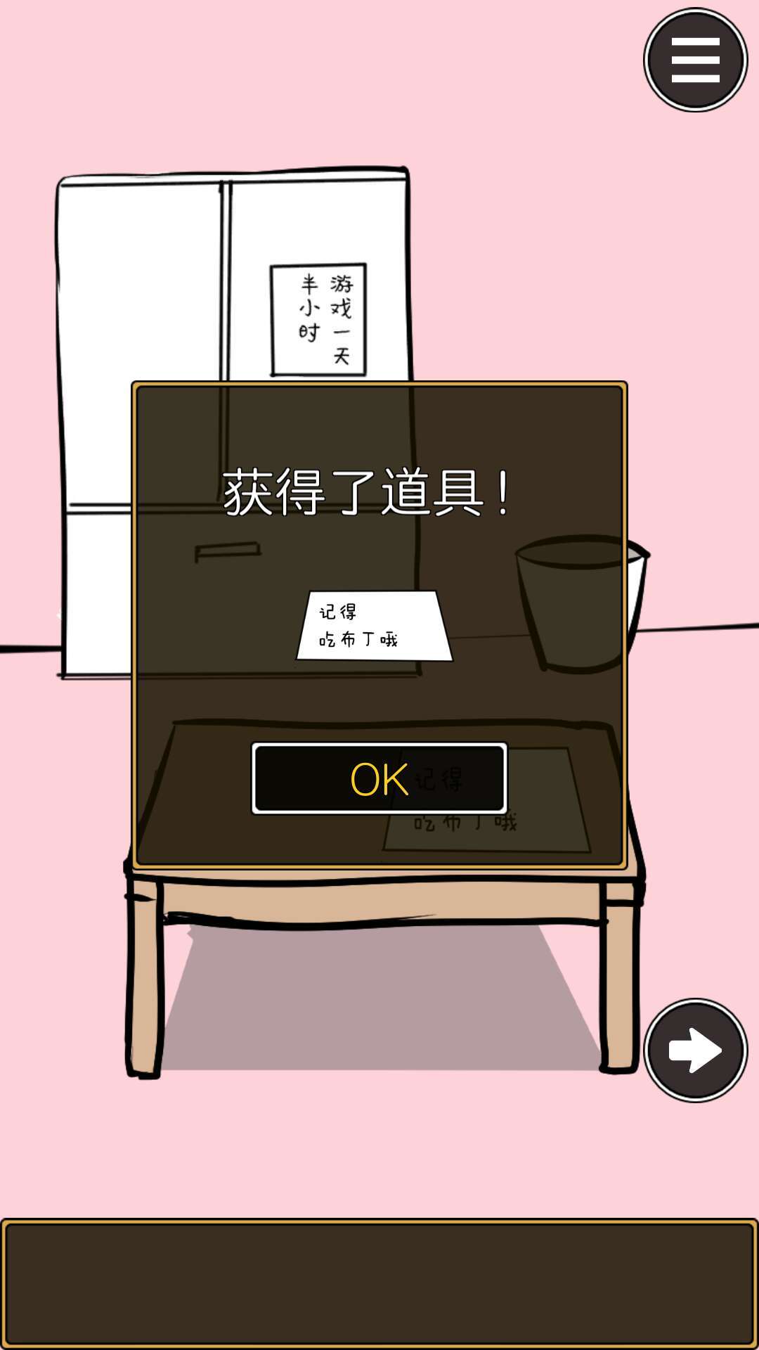 点击桌子上的便条,得到便条(不拿也行,通关用不着)