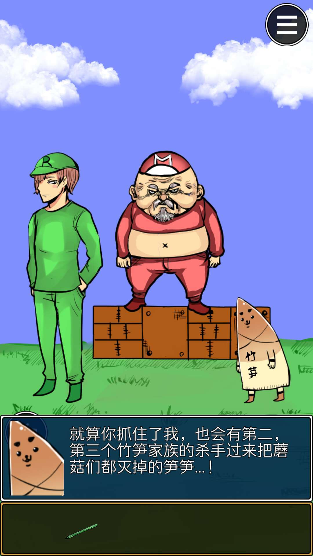 第二页还是和众人对话后,对竹笋使用竹子,得到真凶,过关