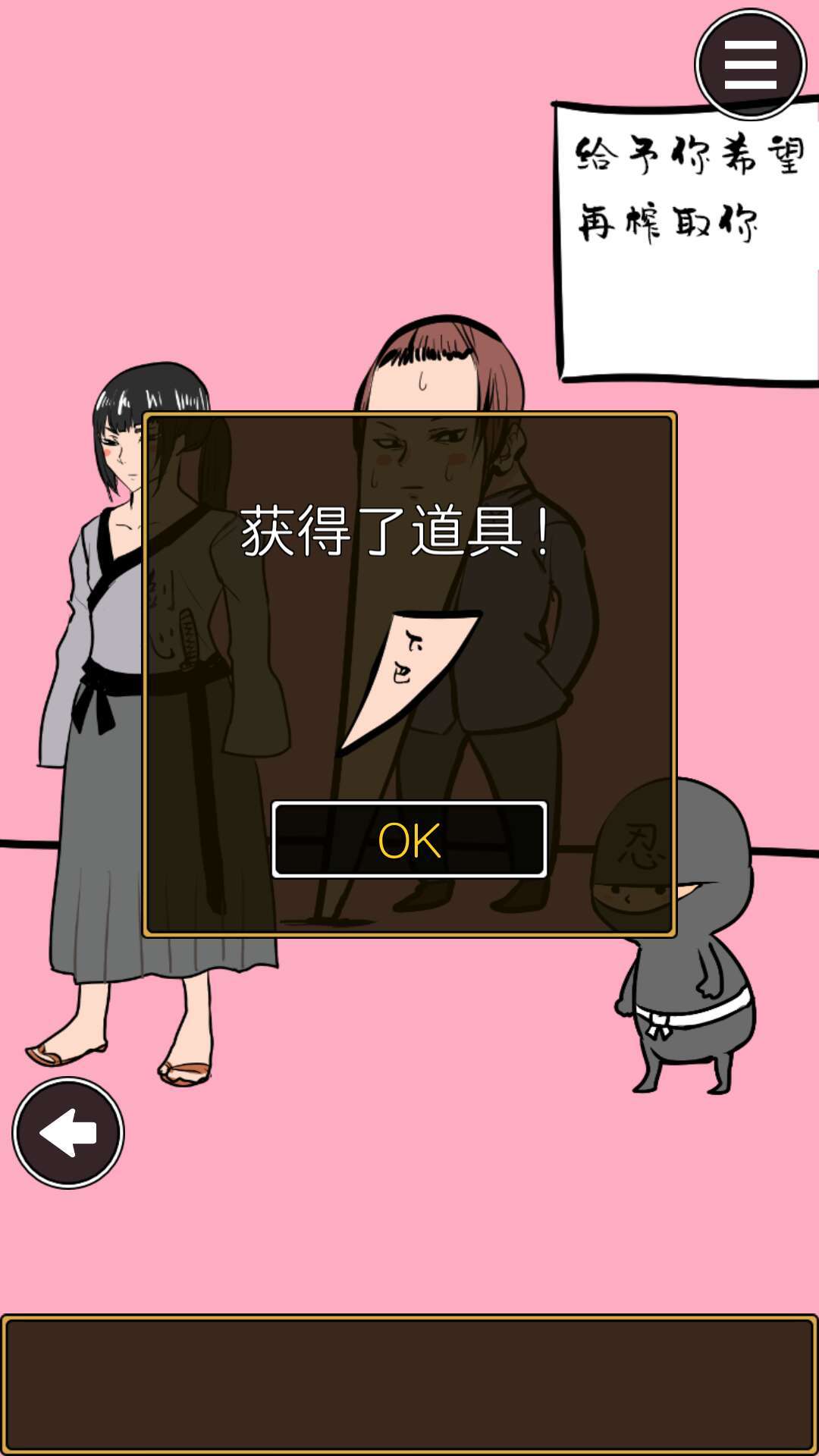 跟第二页的三人对话,和中间的人对话后得到下巴(什么鬼)