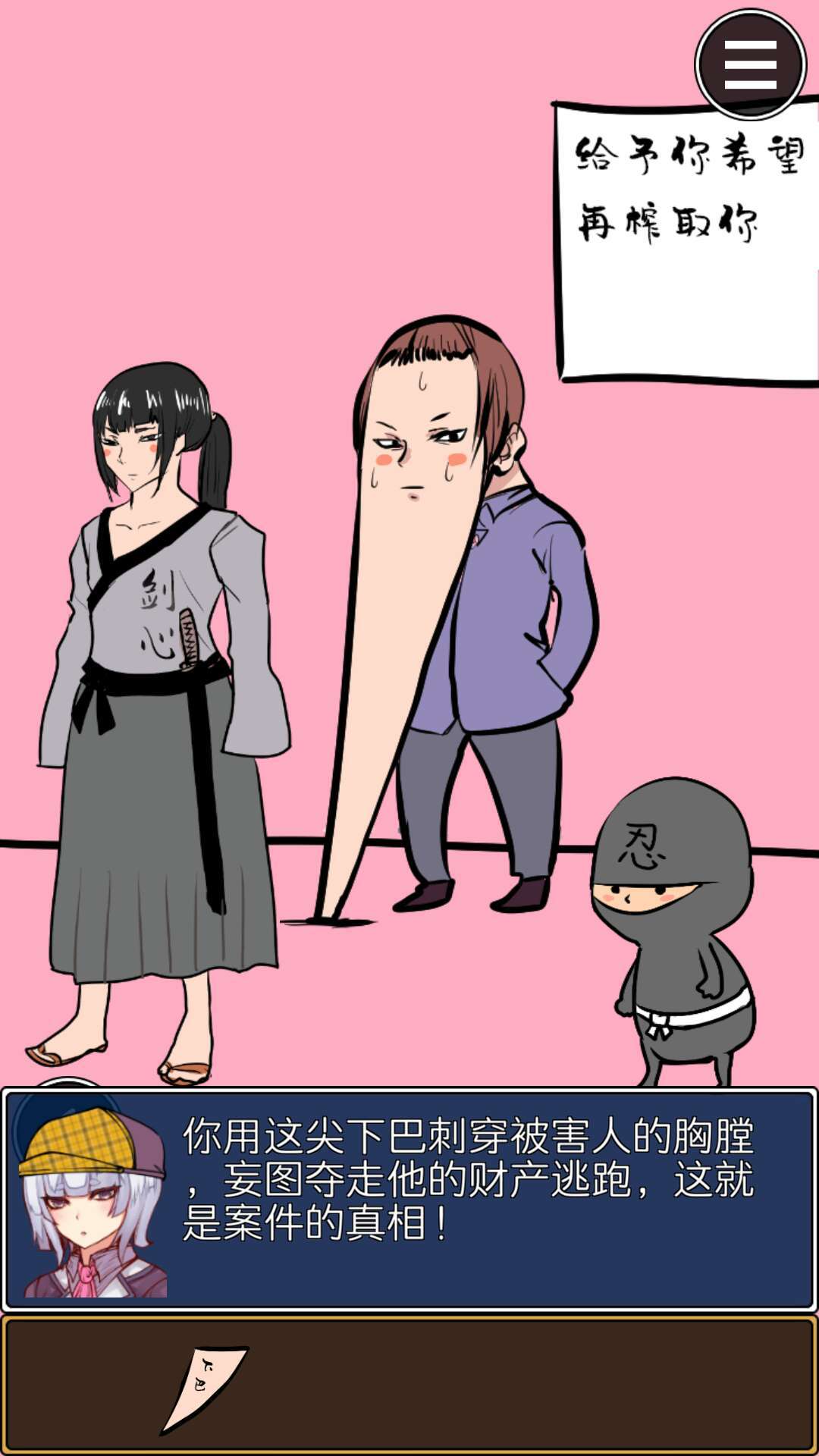 来到第二页,还是先和每个人对话,和侦探对话时会出现选项,选择【不打电话】