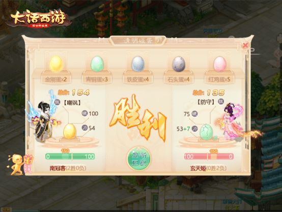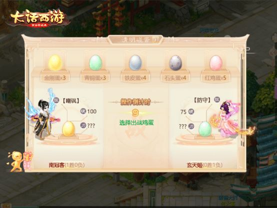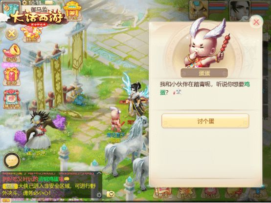 2019年4月5日上午10:00-4月8日上午4:55,“清明碰蛋”活动正式开启。活动期间,每天上午10点至22点,每隔10分钟大话的世界各地都会出现神奇的鸡蛋童子,玩家可四处踏青找到鸡蛋童子讨要鸡蛋,一位玩家每天最多可以获得30颗鸡蛋。找不到鸡蛋童子也没有关系,玩家通过每天的日常活跃度奖励,也可以获得鸡蛋。