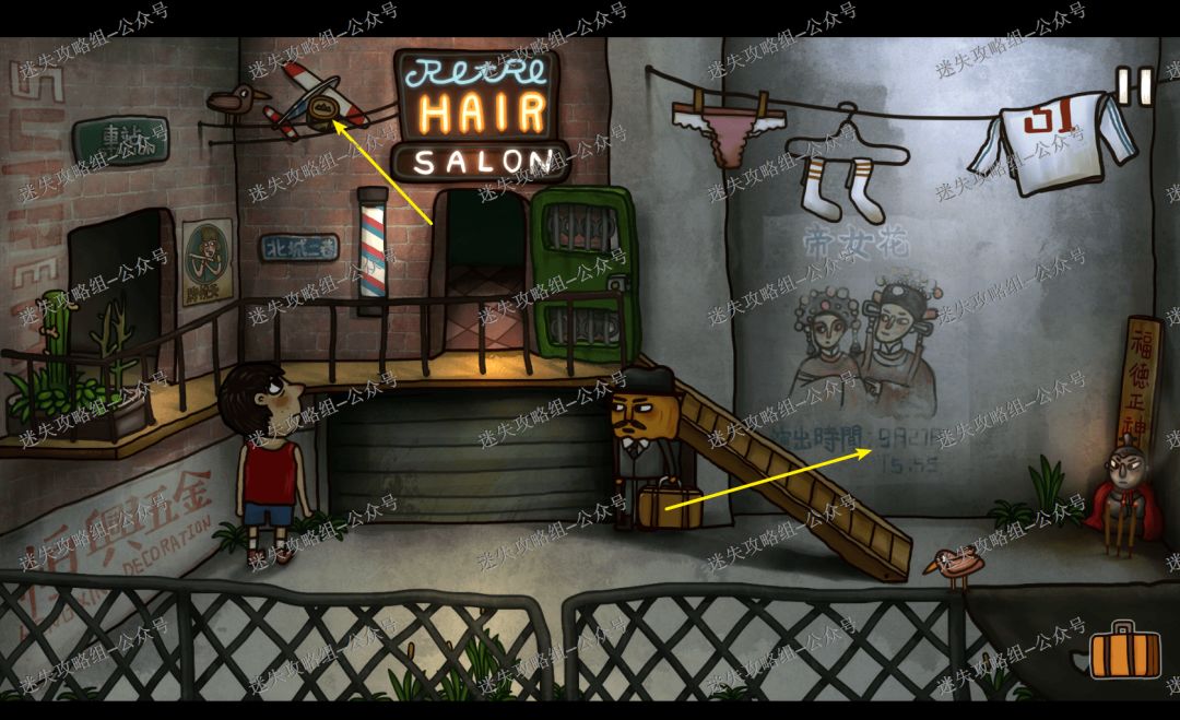 下车开门直接往门里走,进门之后看到上面飞机那里有土钥匙,右边的海报演出时间要记下来1555,之后我们进入到发廊,在右下角有一支铅笔捡起来,继续往前走,出门之后往左进入一个老奶奶的家里。21.1 21.2 21.3