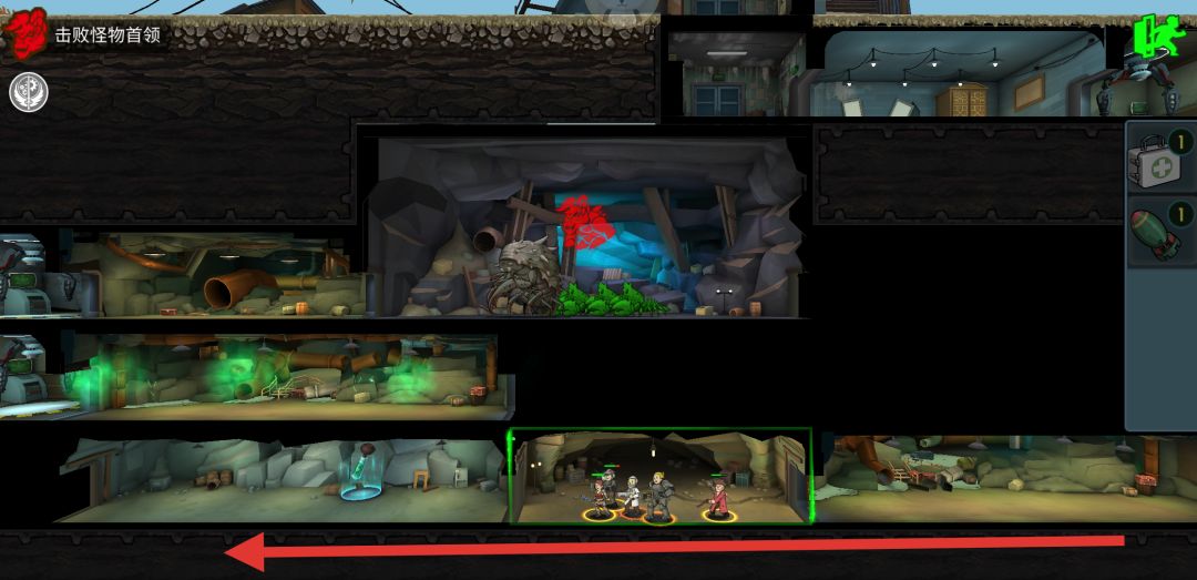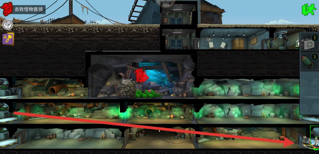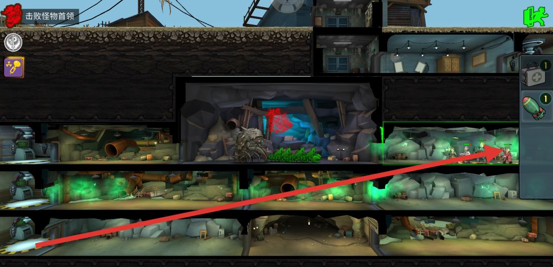 此路上需要打一波小怪,很容易就能获得一发核弹和免疫辐射的血清