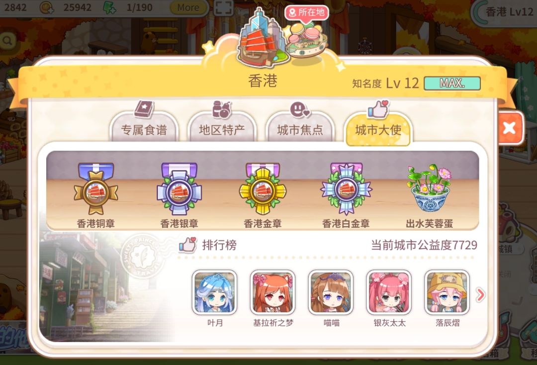 香港:推薦做九龍球、小夜曲或熊貓戚風蛋糕,公益度都是加313,五城市中最容易升公益度的城市