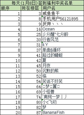 当天的签到贴下留言签到即视为参与活动(每天新开一贴签到,今天的签到贴到1月10日中午12:00截止)