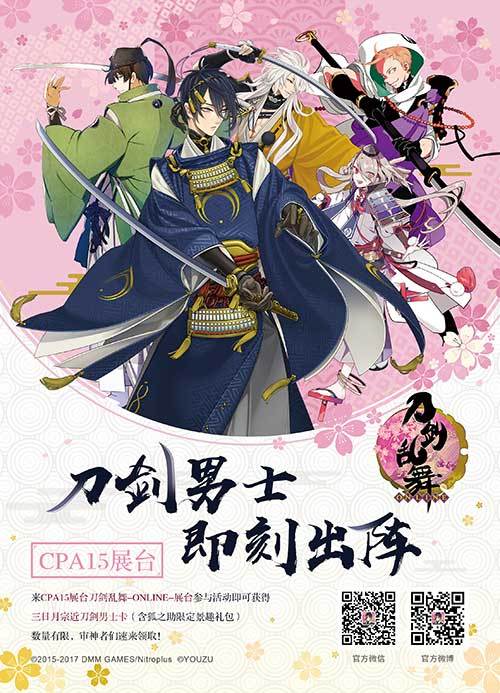 2017年4月26日~5月1日,杭州滨江白马湖动漫广场,第十三届中国国际动漫节上,《刀剑乱舞-ONLINE-》将与天闻角川合作,为杭州的审神者送去本丸福利。