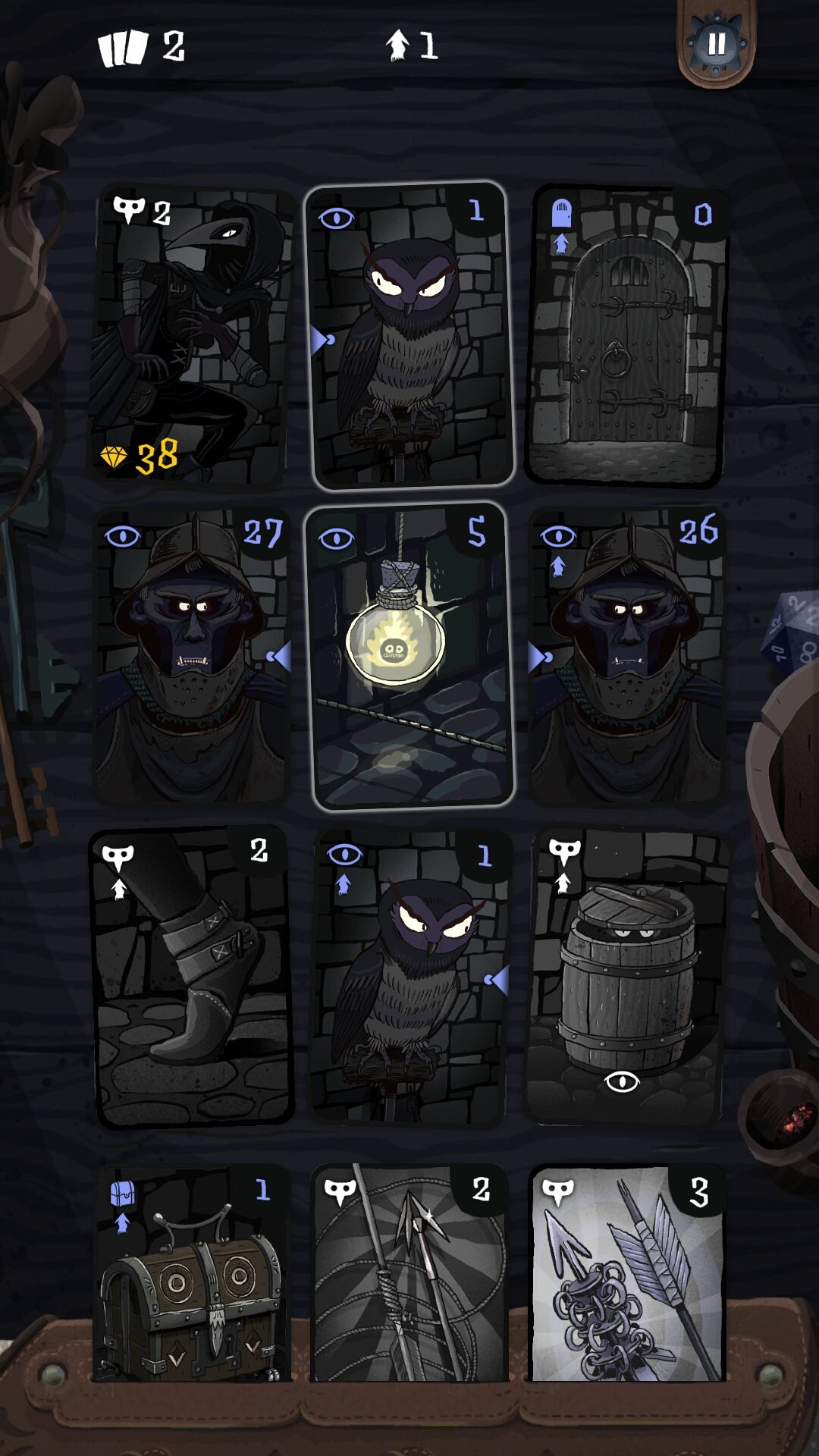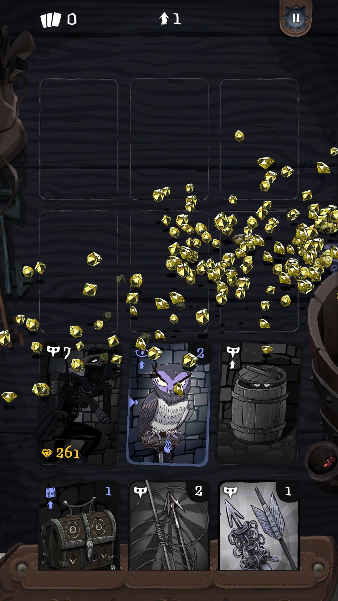 游戏目标:带走宝箱并且找到出口。屏幕左上会有个牌堆牌数,当牌堆耗尽时出口出现。