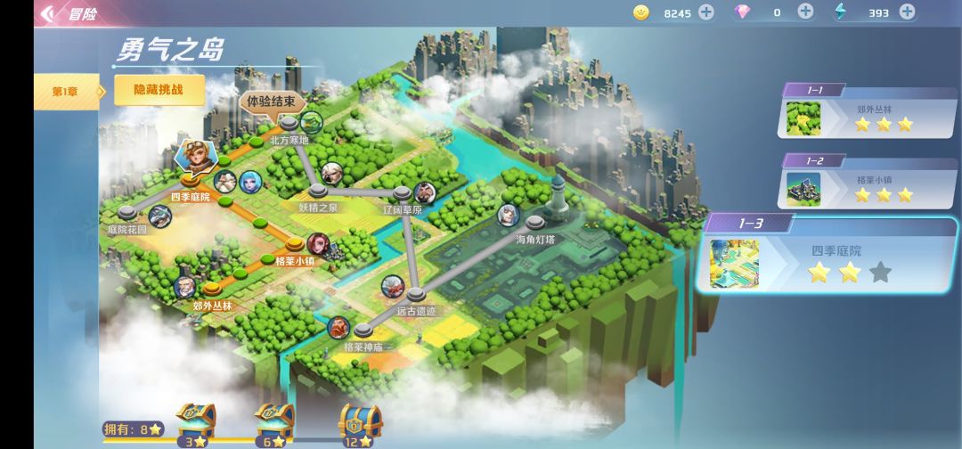 这次测试太短,庭院花园我找了半天没找到,估计还没开放,三个探险关,6个战斗关一个隐藏关,全部内容了