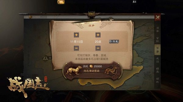 在泰国指挥泰米尔的回忆中,那次国战发生的非常突然,甚至前一天魏国还表示要与赵国交好,但实则在暗中快速累积民心,准备发动奇袭。《战国志》的宣战设定了普通宣战和奇袭宣战两种方式,普通宣战消耗3万民心,奇袭宣战消耗6万民心。那一次,魏国发动了奇袭宣战,即在一小时后便可对赵国发动进攻。