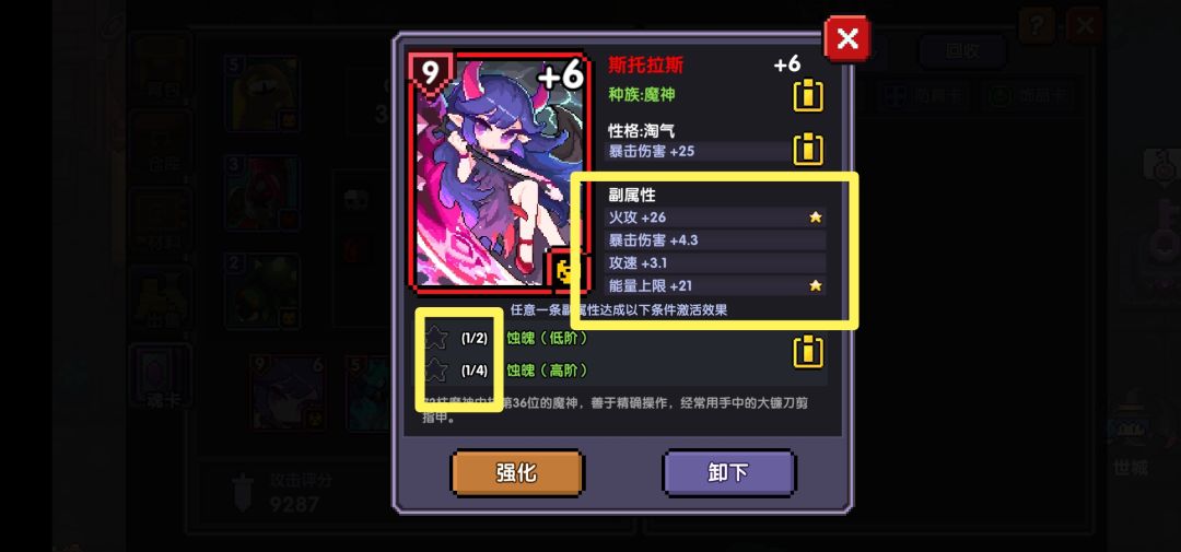 而我们在强化魂卡的时候,魂卡属性会得到随机的加强,每三级会点亮一颗小星星,当某一条副属性达到二星时,就能激活特殊效果。