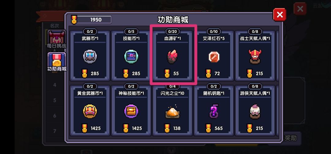 竞技场,血源矿的重要出产地,强烈推荐每天换满,至于剩下的徽章换什么,看个人需要吧。
