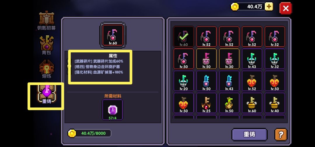钥匙还拥有重铸功能,我们可以通过重铸洗出来大家喜欢的三深渊额什么的。