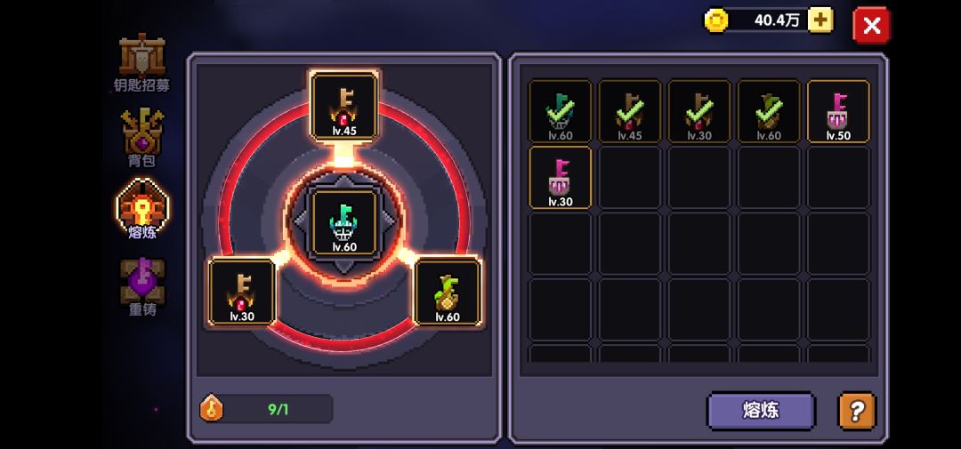 四枚同品质的钥匙可以熔炼成一枚更高级的钥匙。