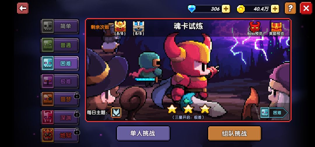 魂卡也是这个游戏重要的一部分,每当三星通关后就能解锁下一个难度,难度越高,掉落的魂卡品级越高,给的灵魂碎片也就越多。