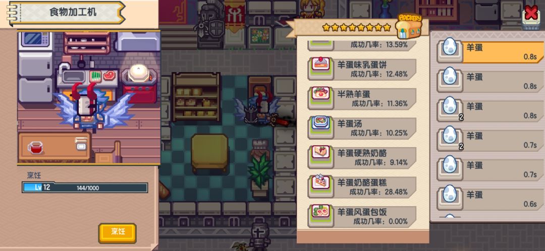 现在我遇到的等级最高的就是王城的食品加工机,但是,最后一种料理的几率依然是0%。